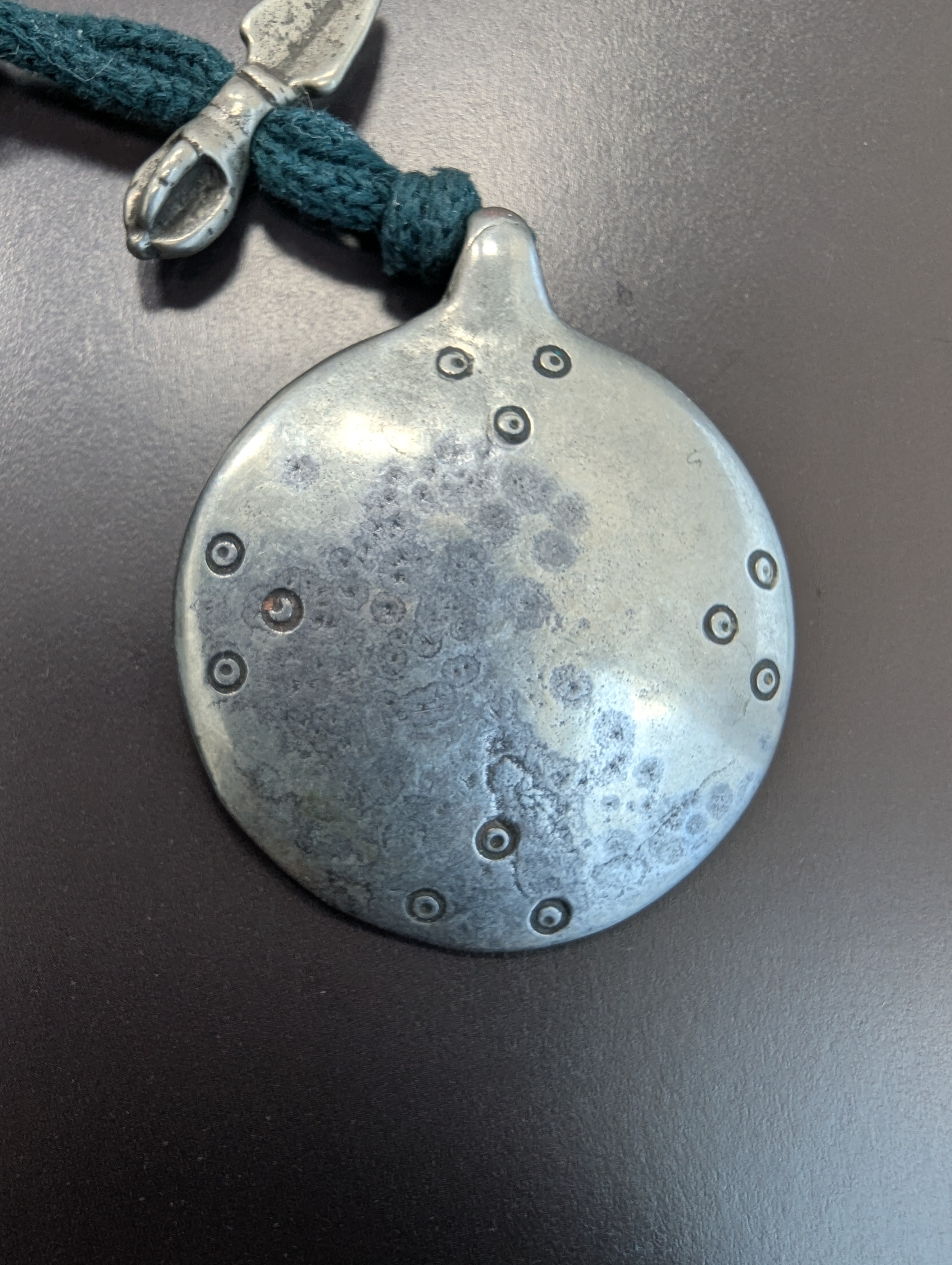 藏品品名 白利馬銅 噶瑪巴千諾 (大寶法王) 護心咒牌 帶12咒點